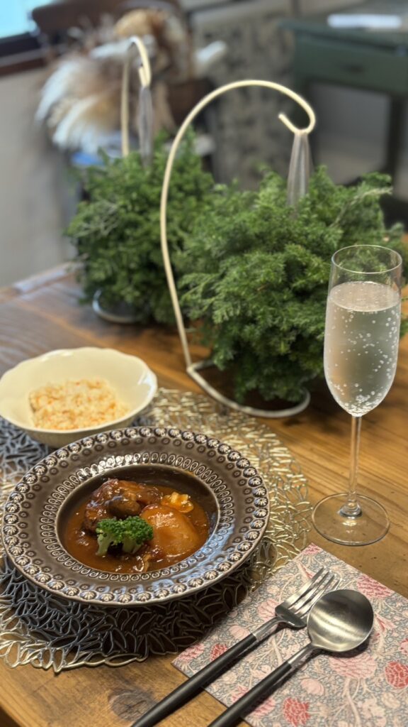 今日のテーブルコーディネートの説明を