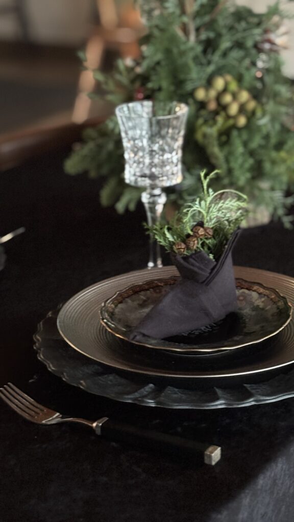 ナプキンをサンタさんのブーツに折ったのが