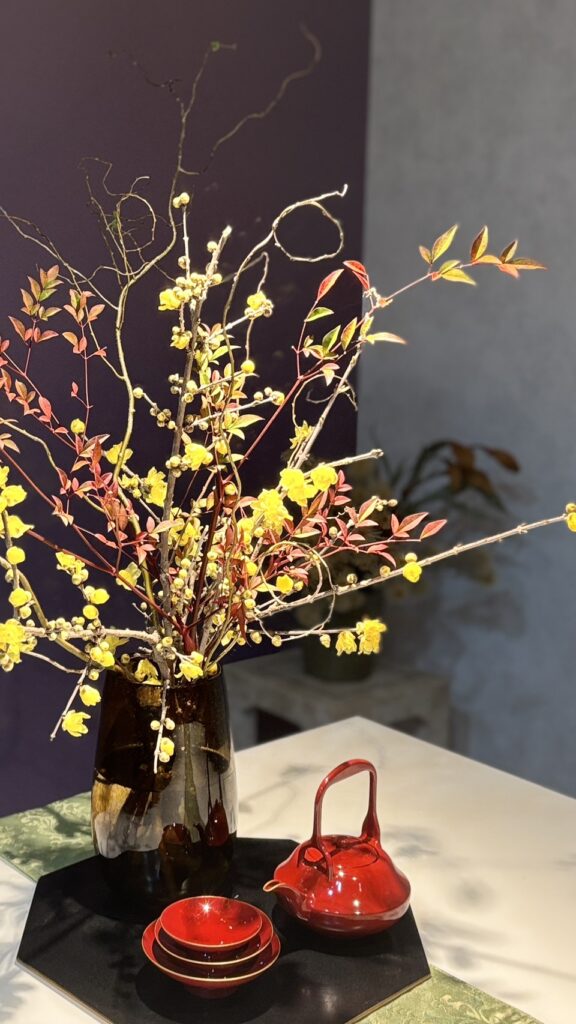 年初めに実家の庭から蝋梅と南天の葉を投げ入れしました。